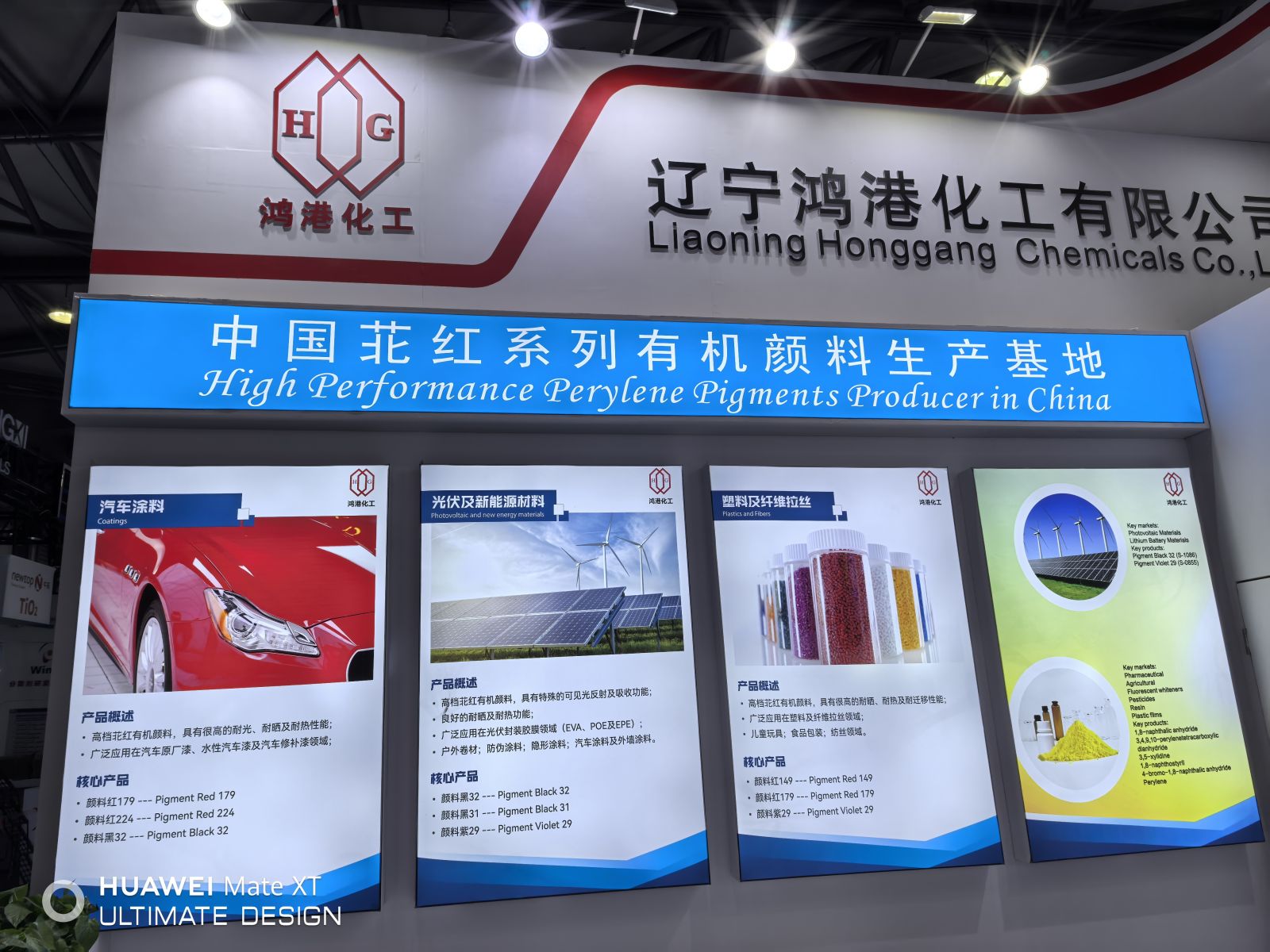 2025年11月25-27日,鴻港化工在上海參加了一年一度的涂料行業(yè)盛會(huì)--中國(guó)國(guó)際涂料展,參展期間,鴻港化工推出了最新工藝的水性涂料應(yīng)用的顏料紅179 (S-0610W與S-0640W)及顏料黑32 (S-1086 G01),得到了客戶(hù)的普遍認(rèn)可,后續(xù)鴻港化工將再接再厲,深耕苝系有機(jī)顏料的研發(fā)與推廣,預(yù)計(jì)在2026年推出顏料紅168及顏料紅178。